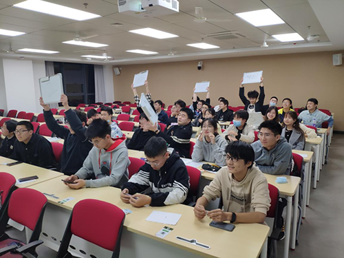 党史知识竞赛环节题目涉及共产党的成立历程、马克思列宁主义中国化历程、抗日战争和解放战争等重要方面的知识,以选择题、简答题和识图题的形式呈现,难度合理。各小组学生积极参与,踊跃答题。尤其在抢答过程中,更见同学们对学习党史、学习先进思想的热情。