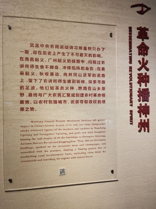 实践队抵达博物馆后,先参观了武昌农讲所旧址纪念馆,它是第一次国共合作时期毛泽东同志倡议创办并主持的一所培养全国农民运动干部的学校。校舍为张之洞创办的北路小学堂,是武汉市现存唯一保存完好的晚清学宫式建筑。然后参观了武昌毛泽东旧居,毛泽东1927年主持农讲所工作并在武汉从事革命活动时的办公地兼居所,是当时中共中央农委的所在地,也是毛泽东、杨开慧一家最后团聚的地方。毛泽东在这里完成了著名的《湖南农民运动考察报告》。