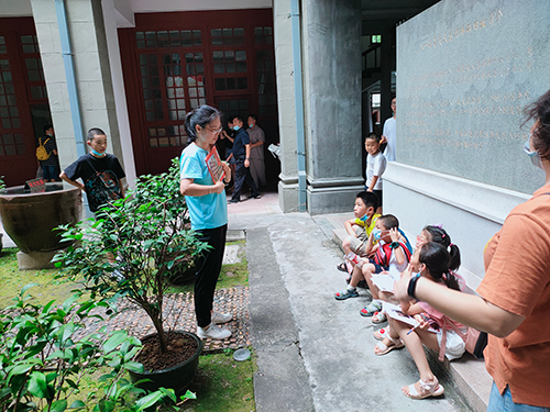 (讲解员为孩子们讲述革命故事)
