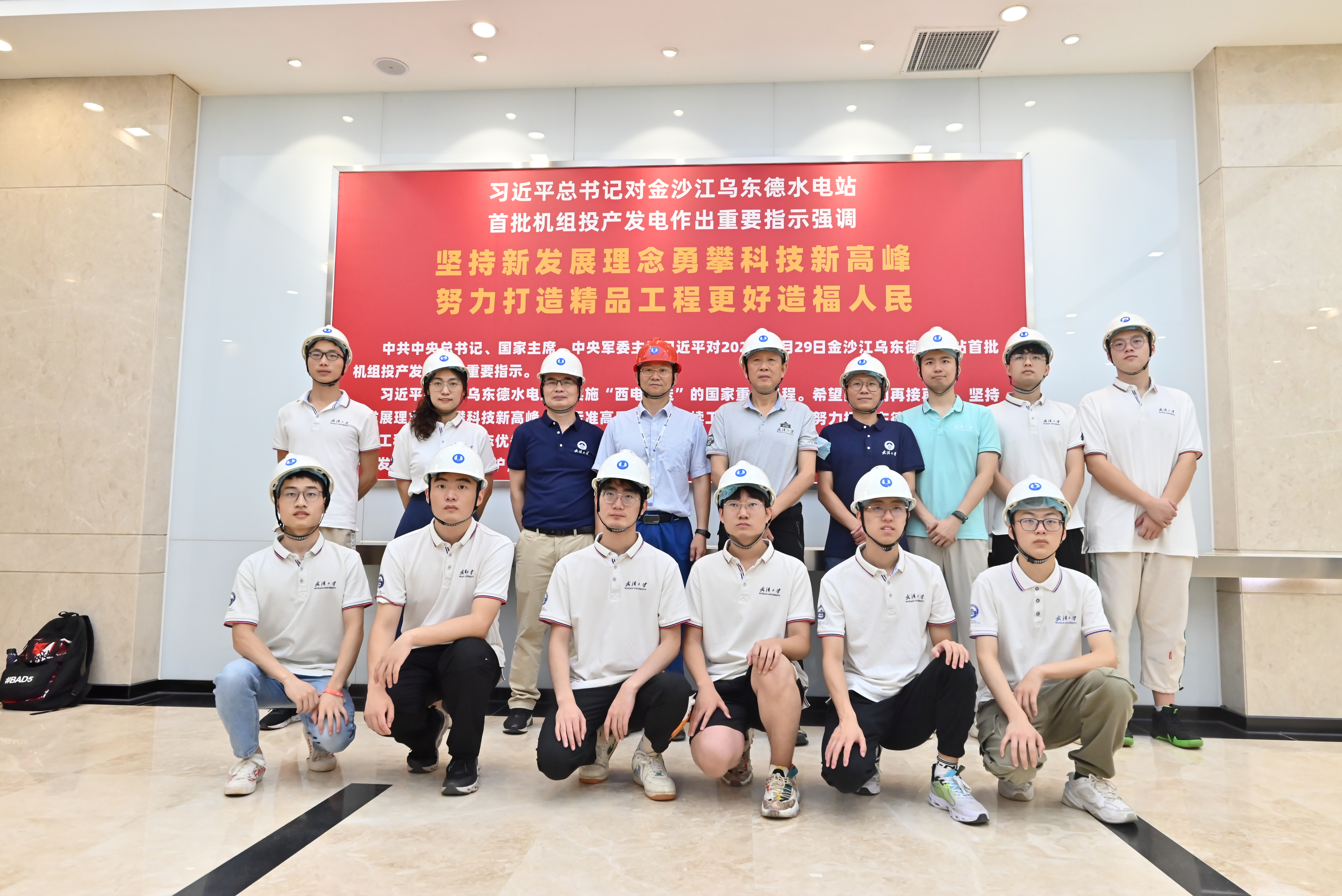 7月4日晚,实践队抵达乌东德水电站,并受到1985届校友、电厂厂长王金涛,2006届校友、机械部主任贺秀儒,机械设备管理主任贾利涛等领导、校友的热情接待。次日上午,王金涛、贾利涛带领实践队参观水电站。从梅子坪观景台、大坝、集鱼站到中控室、调压井,实践队近距离观察水电站全貌,亲身感受国家重大工程的雄伟。经王金涛介绍,实践队全面了解了水电站设计、建设、运行等全过程,领会到国家重大工程建设的自豪感;在贾利涛的讲解以及蒋劲、肖志怀的指导下,实践队成员更从专业知识的角度理解了水电站部分特殊设计的原理与效果。参观过程中,在水电站工作人员的帮助下,实践队成员观察集鱼站尾水集鱼工作,体会水电站对长江珍惜鱼类的保护做出的创新及其高质量的生态环保建设。