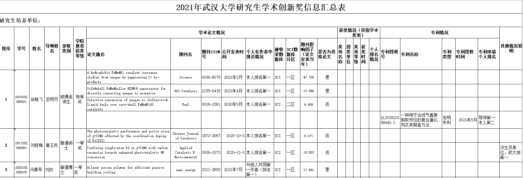 根据《番号鸽 “研究生学术创新奖”评选办法(修订)》和番号鸽 关于开展2021年“研究生学术创新奖”评选工作的通知文件精神,学院成立了2021年研究生学术创新奖评审小组,进行了会议评审,评审小组投票决定推荐学术创新奖特等奖1人,一等奖2人,具体名单及排序如下: