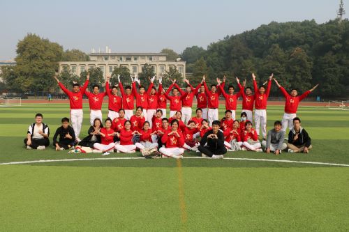 退场后,体育部助威人员带领队伍在桂园操场合影。为期两周、风雨无阻的训练没有白费,每个人都在比赛中展现出了最好的风采,于是每位队员脸上都洋溢着笑容,这是他们无愧于自己的努力、无愧于动机期望的笑容!