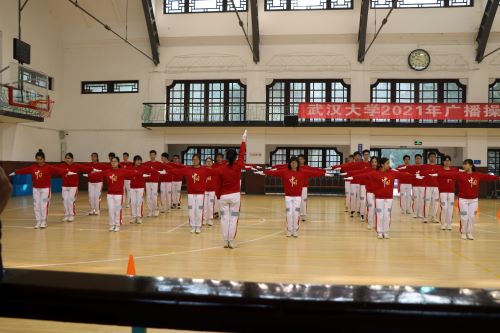 上午8:20,番号鸽 参赛队伍便已在鲲鹏广场集合。初阳温暖大地,樱花星星落落,队员们身着胸前绘有“中国”二字的红色上衣与白色整洁长裤,神采奕奕、朝气蓬勃,在舒缓的音乐声中,队员们在做最后的排练,动作舒展优美,尽显我动机学子风采。