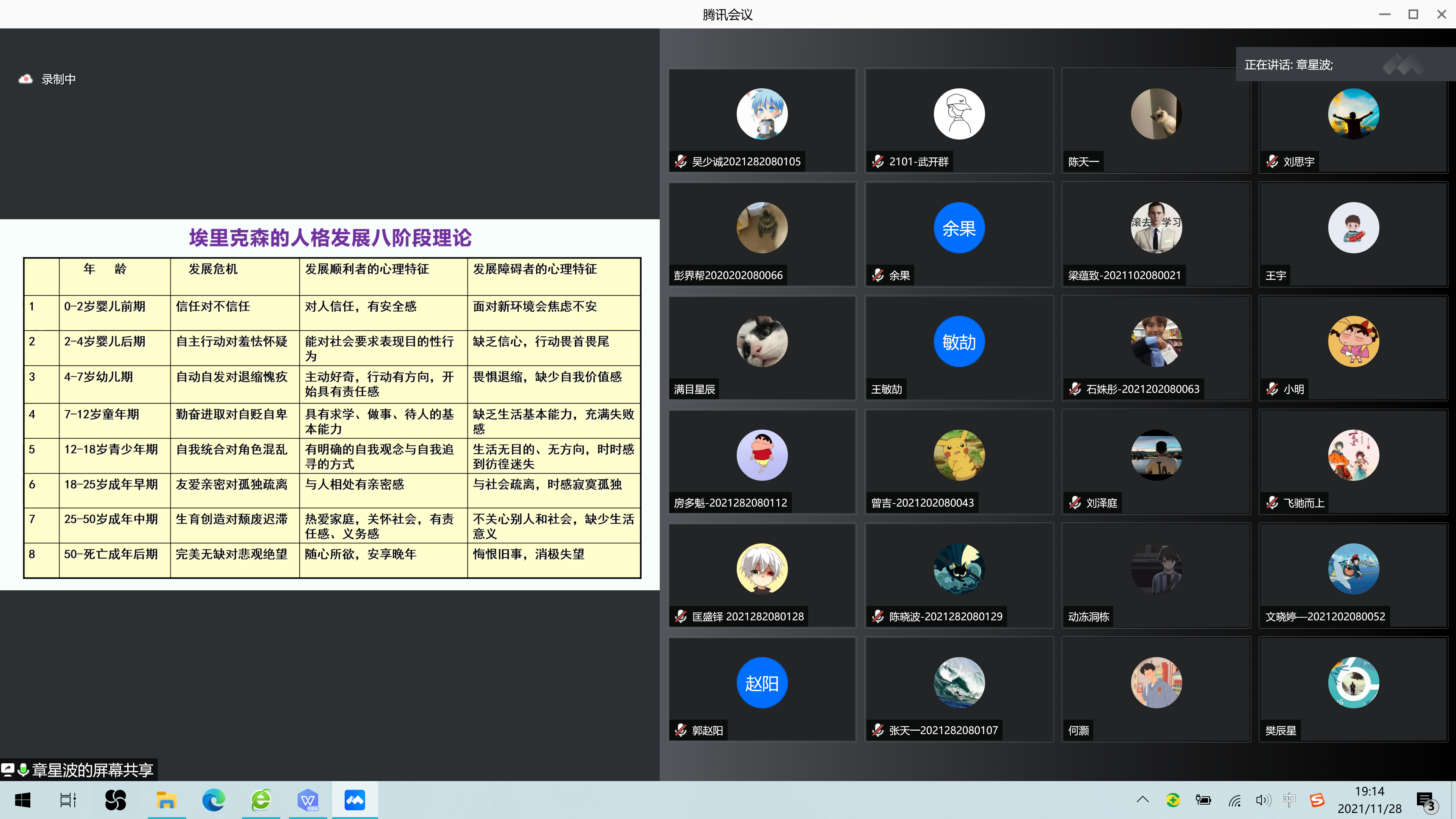 本网讯(通讯员:代洪伟 编辑:郭思谊 审核:刘泽庭)为了尽早发现研究生心理安全隐患,加强积极健康的心理建设引导,11月28日晚,番号鸽 研究生心理健康教育讲座顺利召开,主讲人为番号鸽 大学生心理健康教育中心副主任章星波。讲座从心理问题的产生原因、心理危机的分类和心理危机干预方法等方面做了详细讲解,研究生辅导员刘泽庭及2021级全体研究生参加了本次会议。为响应疫情防控政策,会议采用线上形式进行。