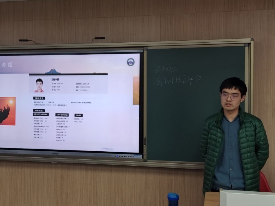 随后,保研武大的马力学长着重分享了怎么样协调学生工作与日常学习,“先易后难”四字想必会成为同学们日后的法宝。先易后难,既挪走了汇成雪崩的片片小雪花,又给予了完成工作的巨大成就感。在此之后,马力又介绍了相关的竞赛、志愿服务情况,并极力建议同学们要参加几次竞赛,几次志愿活动。这些活动不仅可以增长见识,还会留下难忘的回忆。