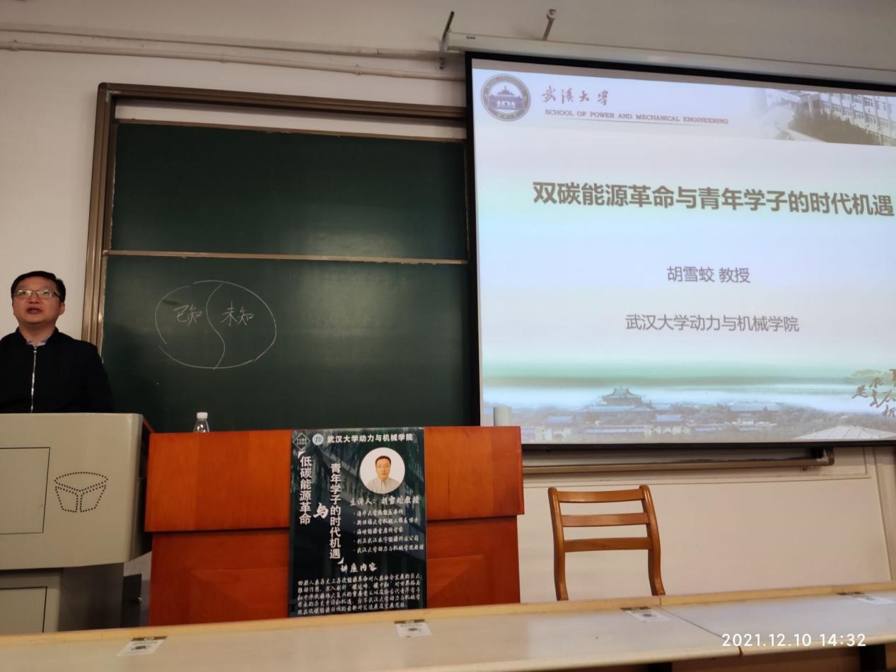 “作为一名21级动机学子,在开学不久,在参观实验室听完学科讲解结束后,我便对能源与动力专业产生了浓厚兴趣,在听完胡雪蛟教授的深刻讲解后,我比较全面的了解了历史上的历次能源革命与未来能源革命的主要方向,同时我也深深感受到了作为一名武大学子的时代责任感,与面对“碳中和,碳达峰”的时代重任,机遇与挑战并存,我们应该迎难而上,不忘初心、牢记使命,为实现建设社会主义现代化强国贡献自己的力量。”