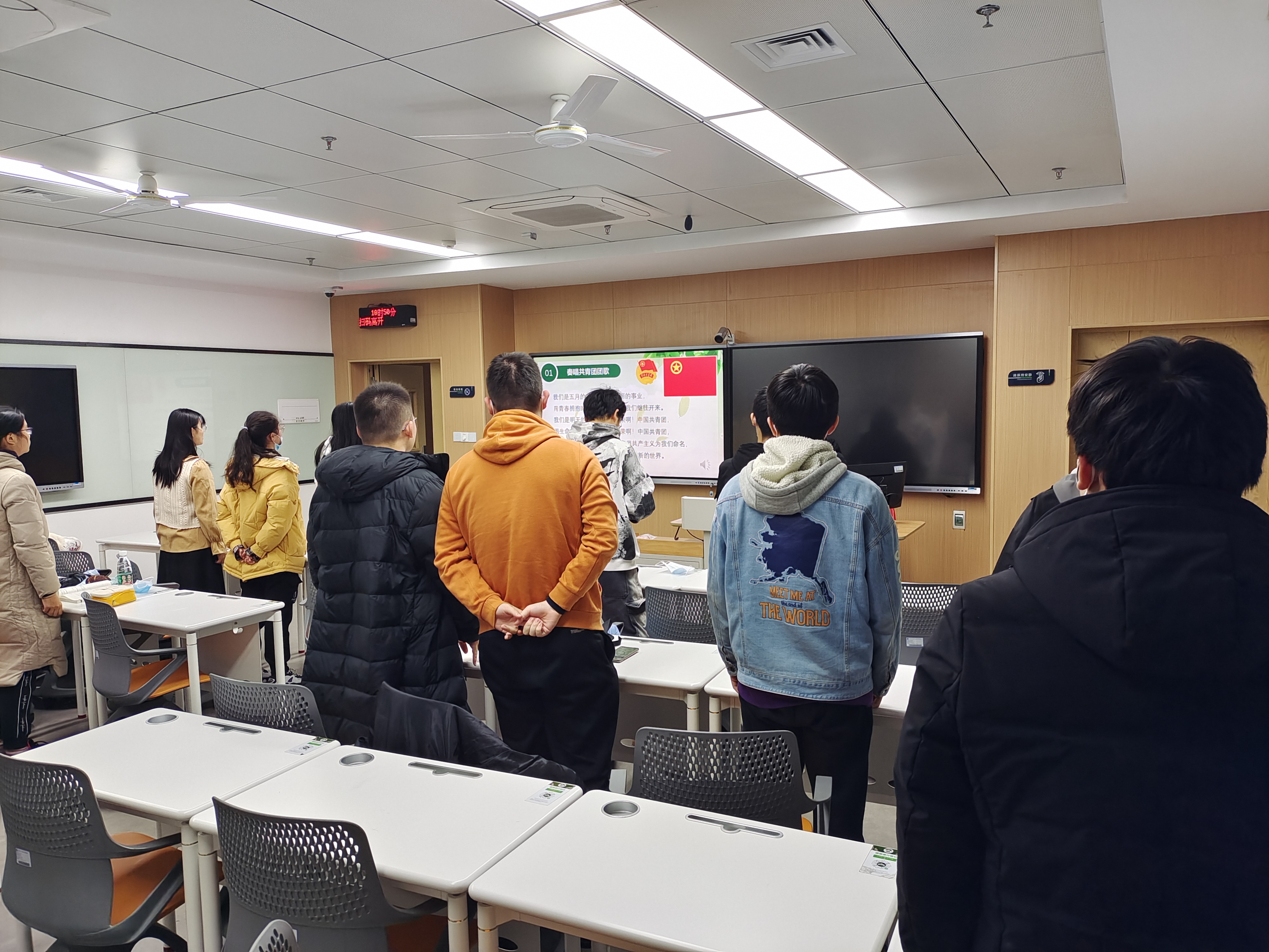 活动开始,团员们用热情洋溢的歌声表达对共青团的热爱,唱响了团歌《光荣啊,中国共青团》,作为每次团日活动的固定开端,每一次唱响时团员们都有着不一样的感悟,团员们的情感每次都比上一次更深沉,逐步摆脱初开学时的稚嫩。
