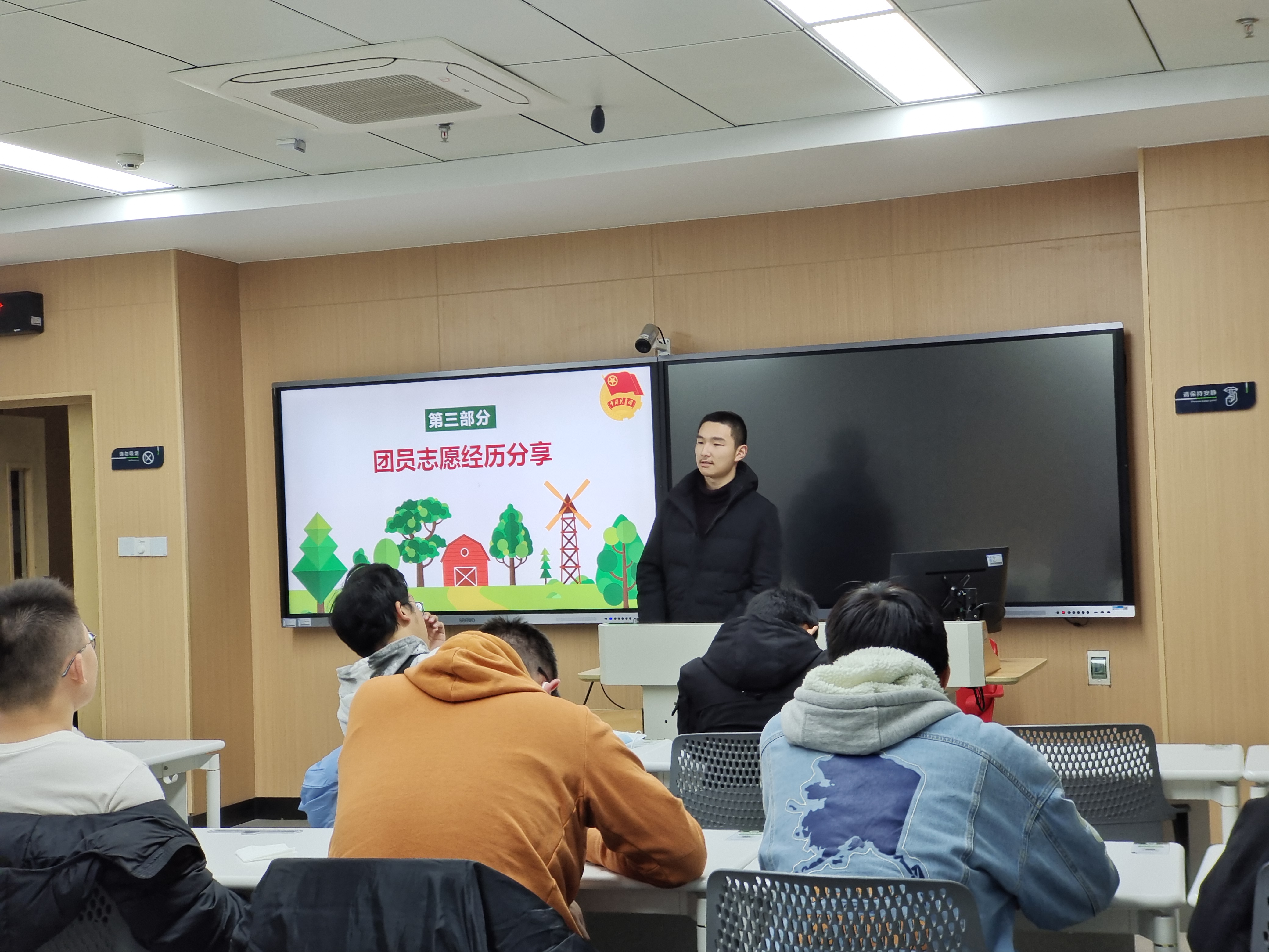 接下来,团支书张铮妍带领团员们观看视频,一起学习习近平总书记对志愿服务的重要指示批示精神,并学习志愿服务精神和理念,倡导团员们践行大学生志愿服务。