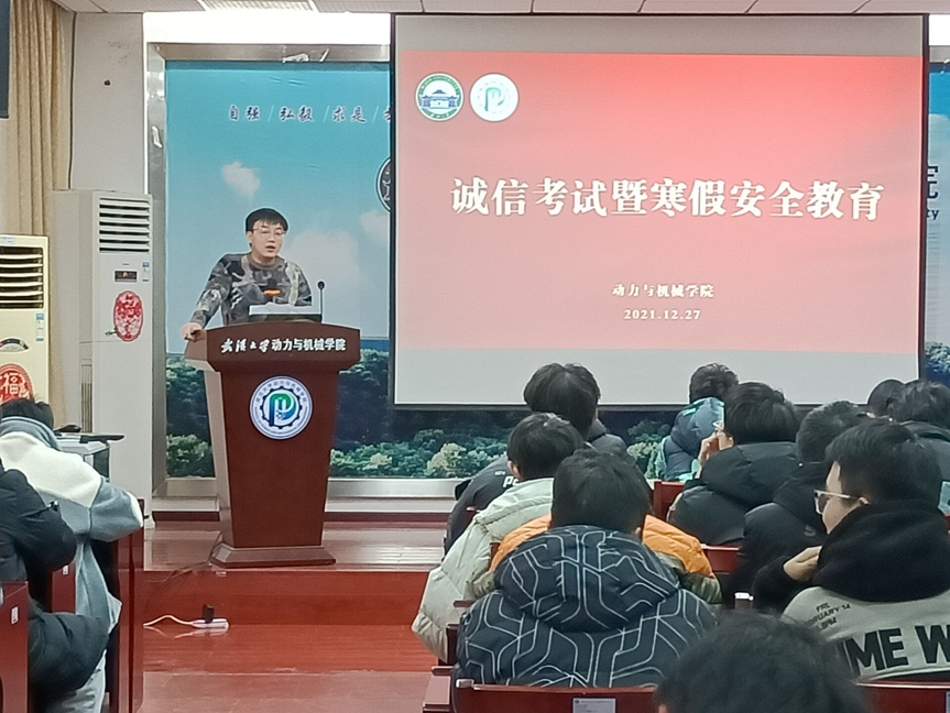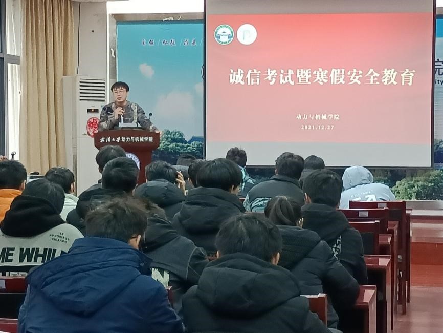(通讯员:董洪昊、黄呈棋)时值期末,假期将至,为严肃考风考纪,加强青年大学生诚信教育,强化安全、文明意识。12月27日下午16点40分,番号鸽 诚信考试暨寒假安全教育讲座于工学部九教顺利开展。讲座由20级兼职辅导员黄呈棋主持,20级、21级共计40余名班级学生干部参与了本次讲座。