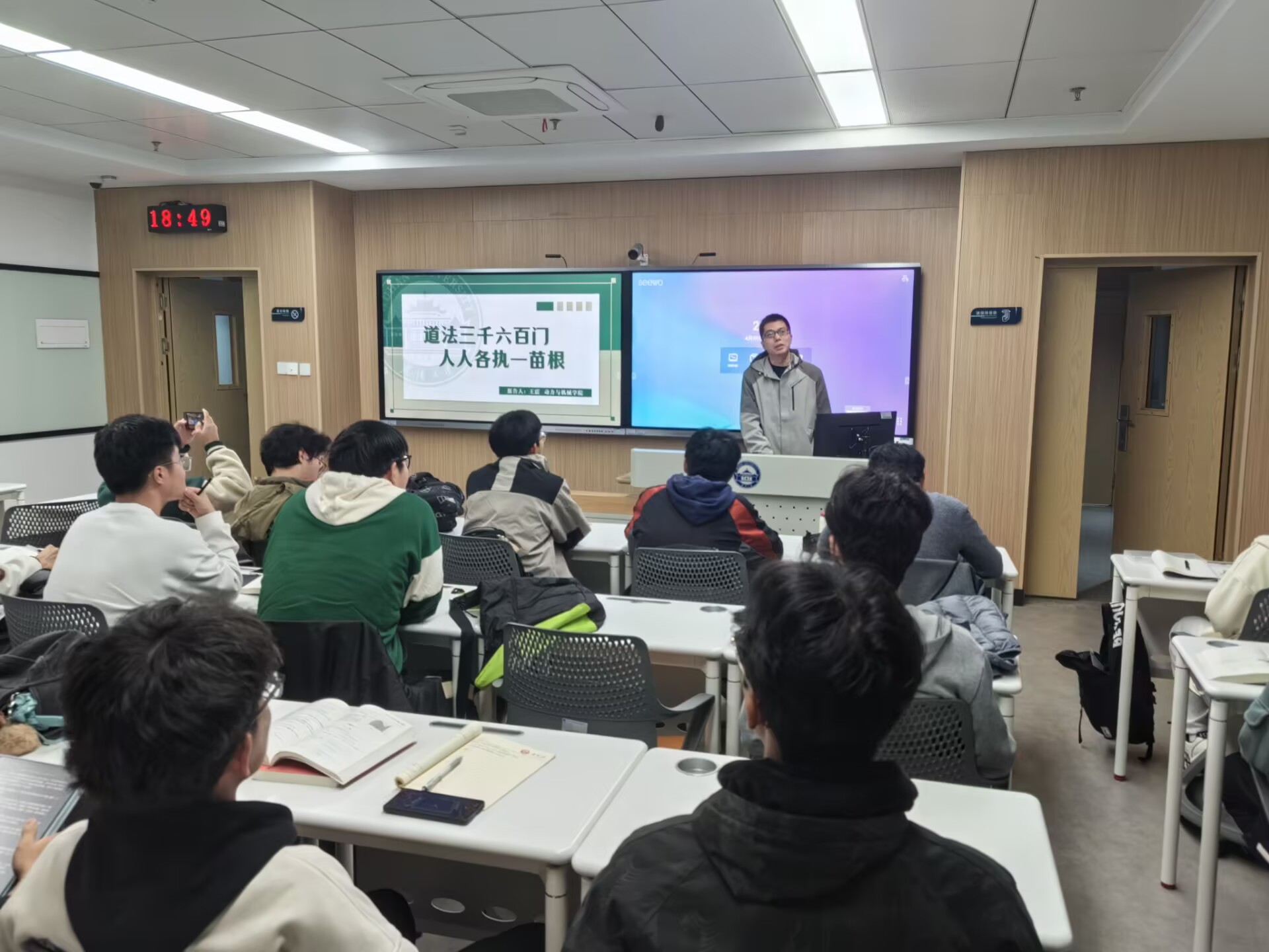 活动第二项,为解决团员青年们关于大学生活和保研入党的疑问,本次团日活动邀请了王震分享他关于大学生活的经验。他以“道法三千六百门,人人各执一苗根”为主题,嘱托大家保研要量力而行,考公要提前布局。此外他还给出了让大学生活不会后悔的三条建议。通过学长的分享,团员青年们有许多感悟与心得体会,这有助于他们在后面的大学生活中找到最适合自己的那条路。