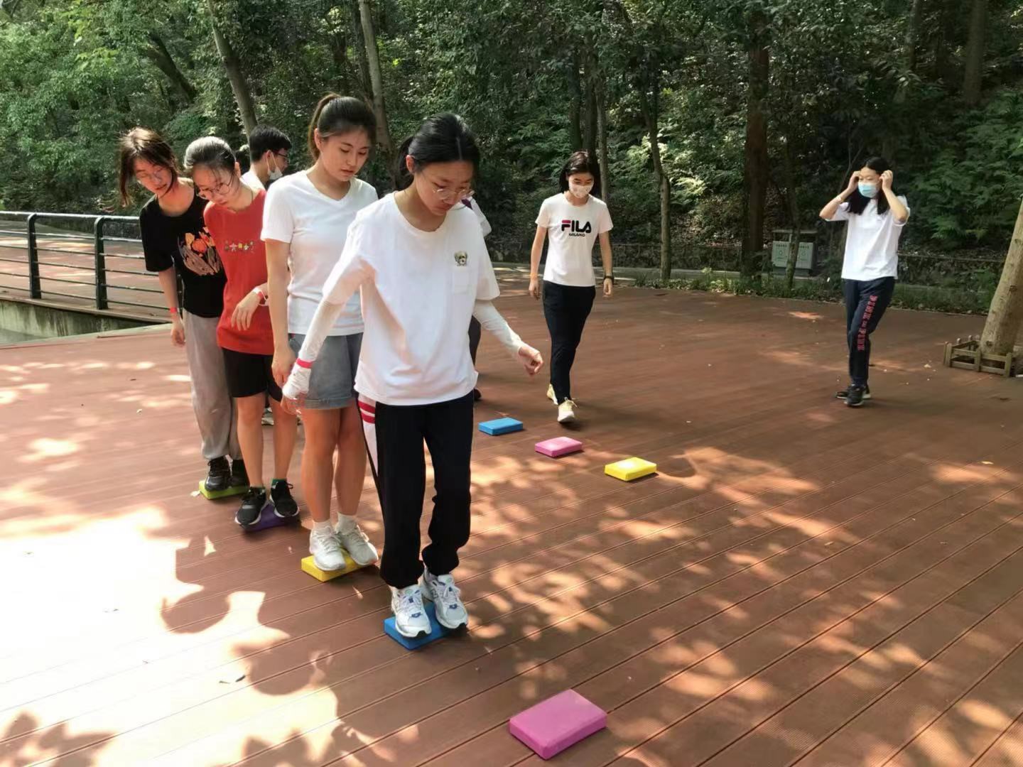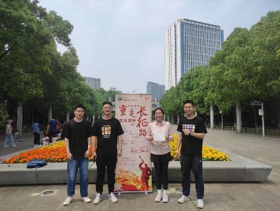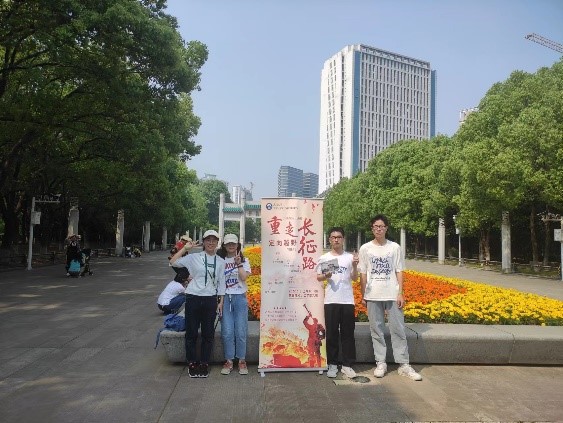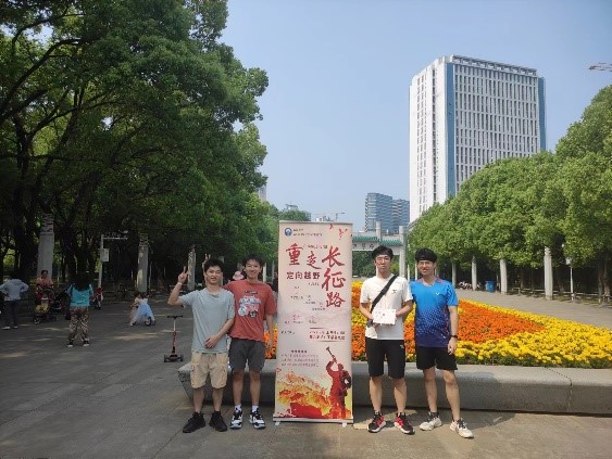 第一站是工学部操场,这个环节的通关游戏是“四渡赤水(两人三足接力)”,主要考验队伍中参赛同学团结一致、不怕艰险、共同进步的精神。第二站是湖滨月湖湖畔,这一站点各参赛队伍回答了关于长征的知识问题,通过回顾历史,增进同学们对长征的了解,为大家更好地体悟长征精神打下基础。之后是珞珈山庄的“摸石过河”环节和教五前小广场的“过草地”环节。经过上述重重关卡之后,最终全力冲刺到达终点校大门牌坊。