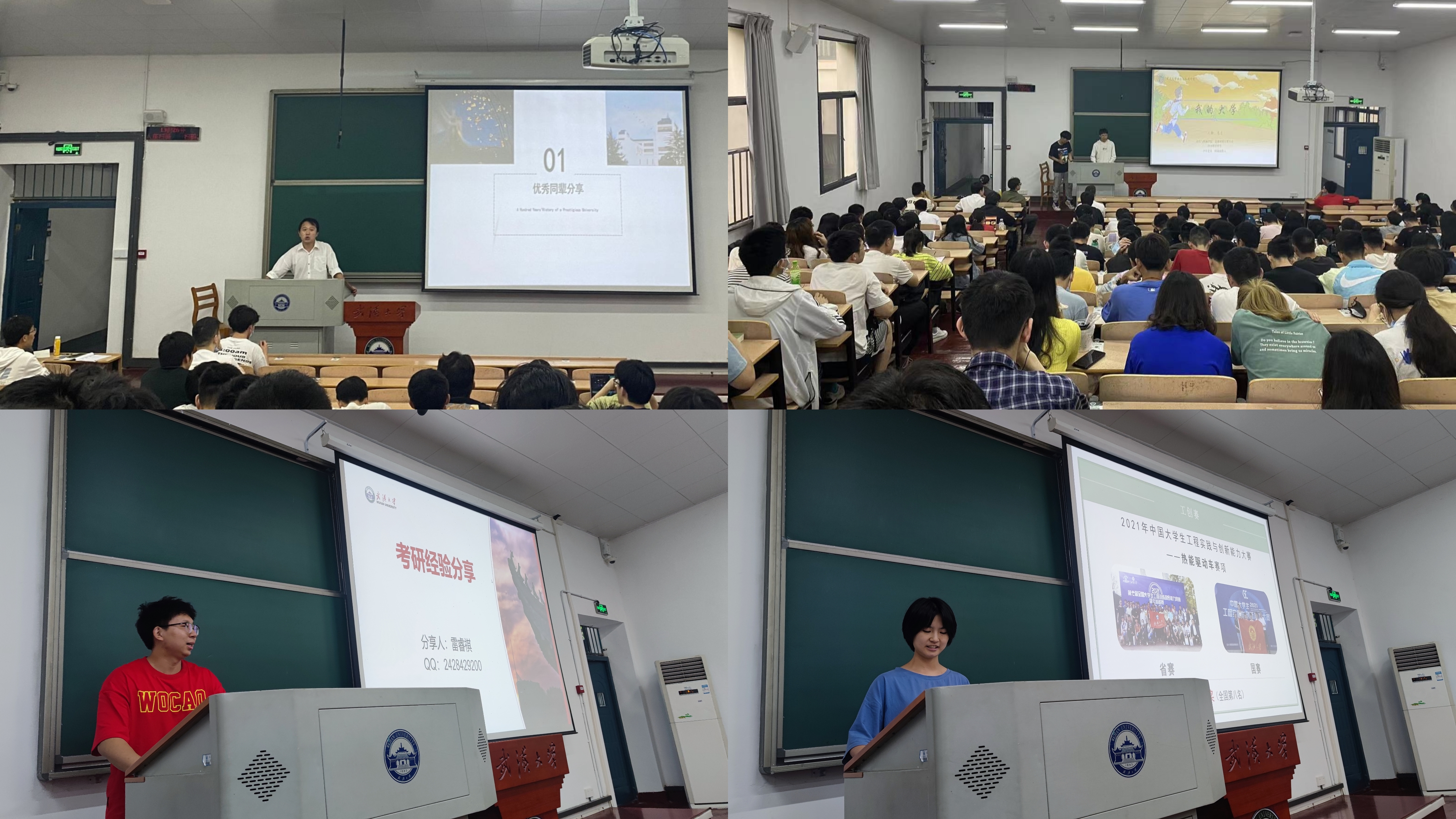 5月28日12点40分,在刘今奇的主持下,第二天的会议正式开始。会议伊始,四位优秀的同辈依次分享了自己的学习生活。首先进行分享的是2018级的马力同学。他结合自己成功保研的经历,分享自己平衡学生工作和科研项目的经验,鼓励2020级的同学们大胆进行科研项目,并就如何保持好心态提出了自己的见解。同为2018级的雷睿祺同学则从考研的角度分享了自己的经验。他认为,在考研这条漫长曲折的道路上,坚持是最为珍贵的因素。稳定的学习计划远比心血来潮的刻苦重要得多。在一次次长夜相守中,很多人耐不住寂寞,扛不过诱惑,以至于在这条长路上半途而废、一无所获,而坚持下去,怕什么前途坎坷,进一寸有进一寸的欢喜。2019级的李帅刚站在大三的末尾为即将步入大三的2020级同学们分享了他这一年的经历。他真诚地分析了自己大三一年在学生工作中的角色转变以及心路历程,那些倥偬纷繁的点滴在他的言语中清晰了起来,他的经历也为2020级的同学们树立了榜样。在此之外他还表示,大三是充满了选择的一年,他希望2020级的同学们能够在崭新的学年多交流、多行动、多体验,让自己对未来有更明确的认知。最后进行分享的是2020级的张蕊佳同学。她分享了自己在两年里参加的各项全国大赛的体会,不仅锻炼了自身创新思考能力,还进一步体会了大国工匠精神。