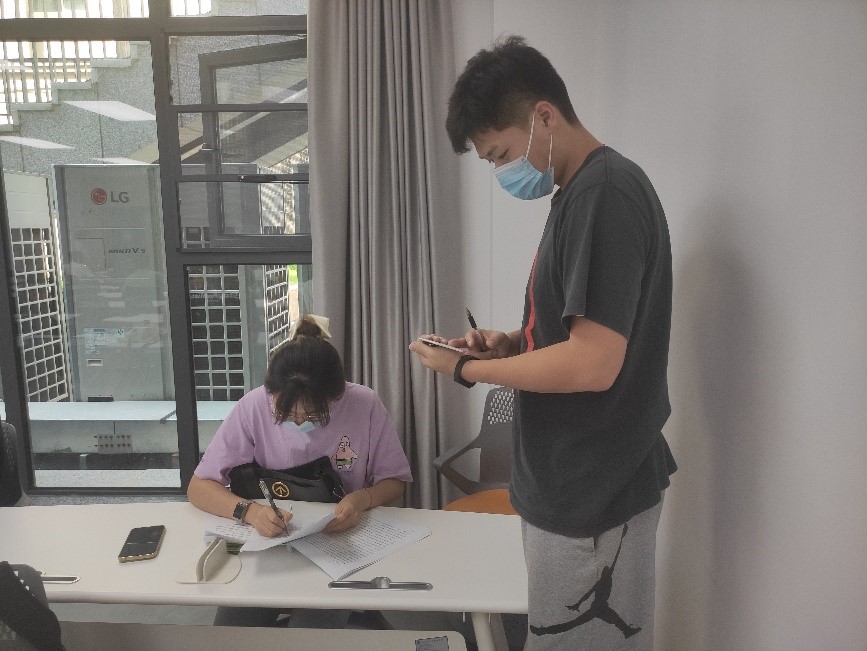 本次测试方式为闭卷考试,分为填空题、选择题、简答题和论述题,考试共一个半小时。考试开始前,党总支纪检委员张天一核对参考人员身份信息。兼职辅导员兰希分发试卷,并向参考人员阐述了学习党的理论知识的重要性。党总支学生副书记明瑞鉴强调了考试纪律。