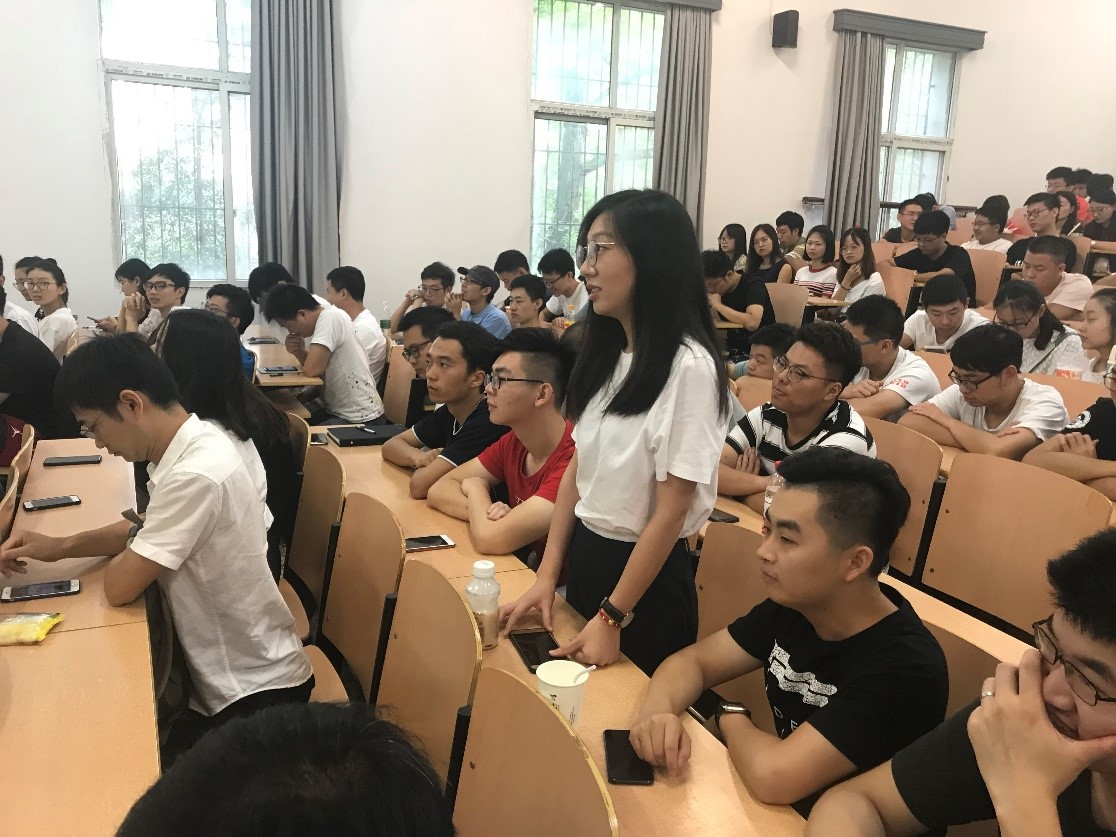 陈曦首先对各位新生的到来表示热烈欢迎,接着她从关键词“初心”开始,让三名同学分享他们来此读研的初心及自己人生的理想抱负,并以杰出校友雷军、院友阮立平和毛明激励同学们胸怀大志、见贤思齐。接着,她就研究生普遍的心理压力,即就业压力、学业压力、人际压力和婚恋压力一一提出解决方法。让同学们在面对消极情绪时学会正视接纳自己的情绪,及时合理宣泄情绪,建立自己的社会支持系统。她提供了学校学院在心理教育及咨询方面能提供的资源及信息,并留下自己的联系方式。最后,她祝愿新生能不忘初心,实现梦想,学有所成。