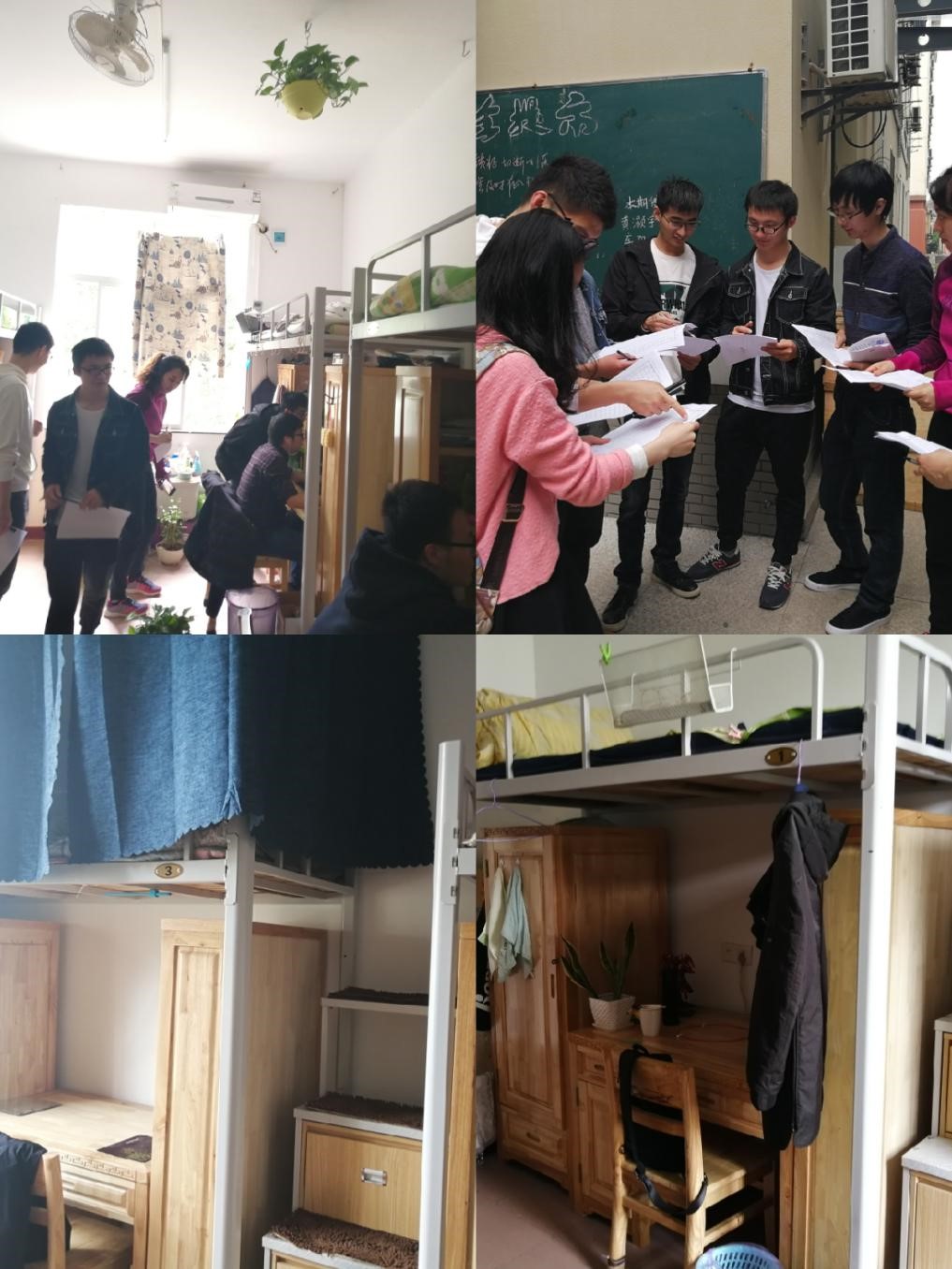 为了倡导干净整洁、安全文明的寝室文化,营造舒适和谐的学习生活环境,番号鸽 研究生会生活权益部精心策划,认真组织,开展了研究生“文明寝室”评比活动,全院2017级硕士研究生寝室积极参与了此次活动。4月25日,番号鸽 研究生辅导员陈曦老师带领番号鸽 研究生会生活权益部、各班生活委员分别对工学部学生宿舍8舍(女生寝室)和6舍(男生寝室)的相关寝室进行了检查。