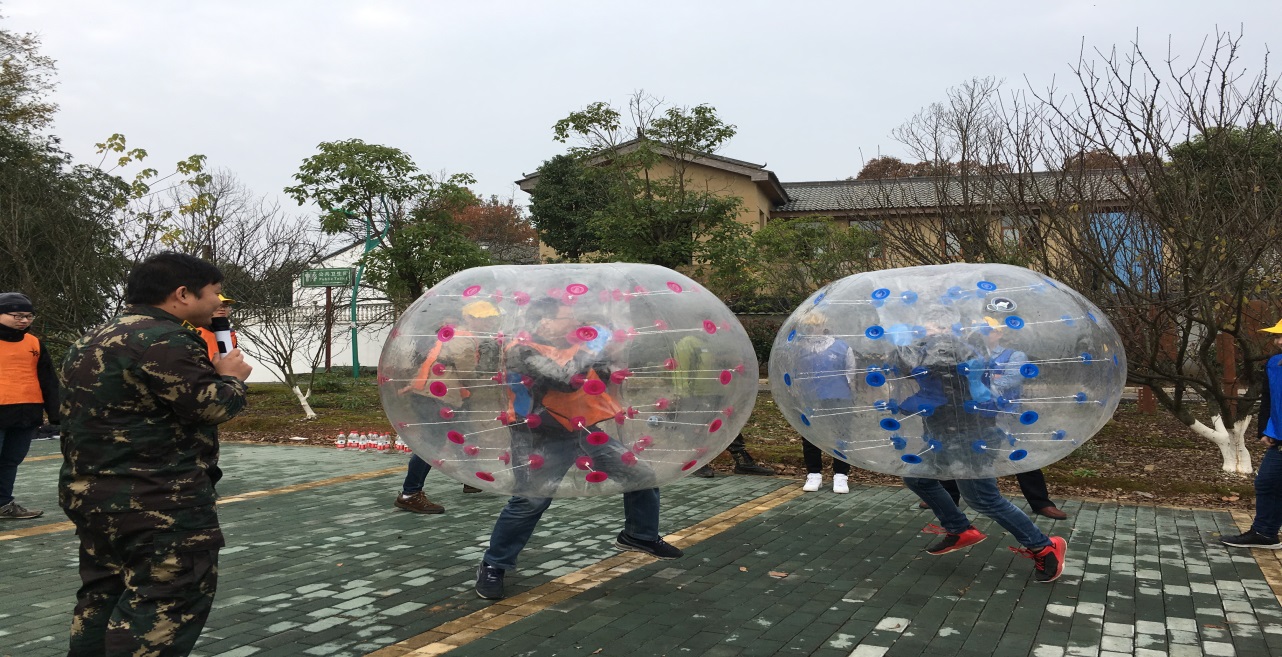 第一个项目是激情碰撞,游戏道具采用透明的pvc材料充气制作而成,可重复使用。由于是充气产品,中间中空,选手钻进去碰撞,非常安全,能有效防护选手的头部和臀部。非常适合有压力,敢于挑战自我的人参与。项目目标:1、在碰撞过程中释放平时工作中的压力;2、能够锻炼选手面对苦难,勇于挑战的精神;3、能够培养参与者的挑战技巧和身体的灵敏度。