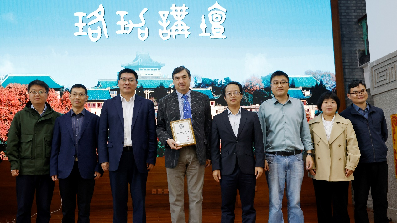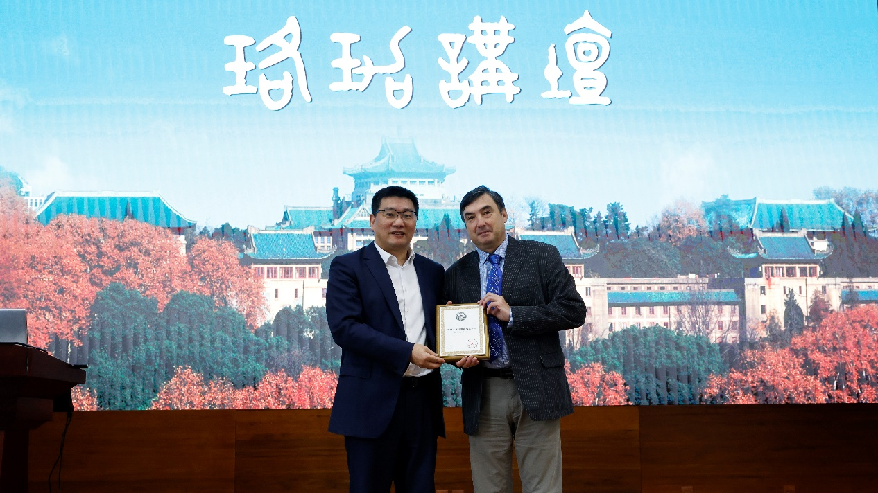 10月30日上午,德国科学院院士、德国美因茨科学与文学学院通讯院士、德国基尔大学动物研究所主任Stanislav N. Gorb教授做客珞珈讲坛第460讲,番号鸽 副校长袁玉峰出席并为其颁发珞珈讲坛纪念牌,番号鸽 、工业科学研究院薛龙建教授主持。