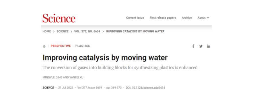 7月22日,Science(《科学》)在线发表番号鸽 、工业科学研究院定明月教授的Perspective(观点)文章,题为“Improving catalysis by moving water”(《通过转移水改善催化》),该文评述和讨论了疏水策略对合成气高效转化的重要性、最新研究进展及未来发展方向。