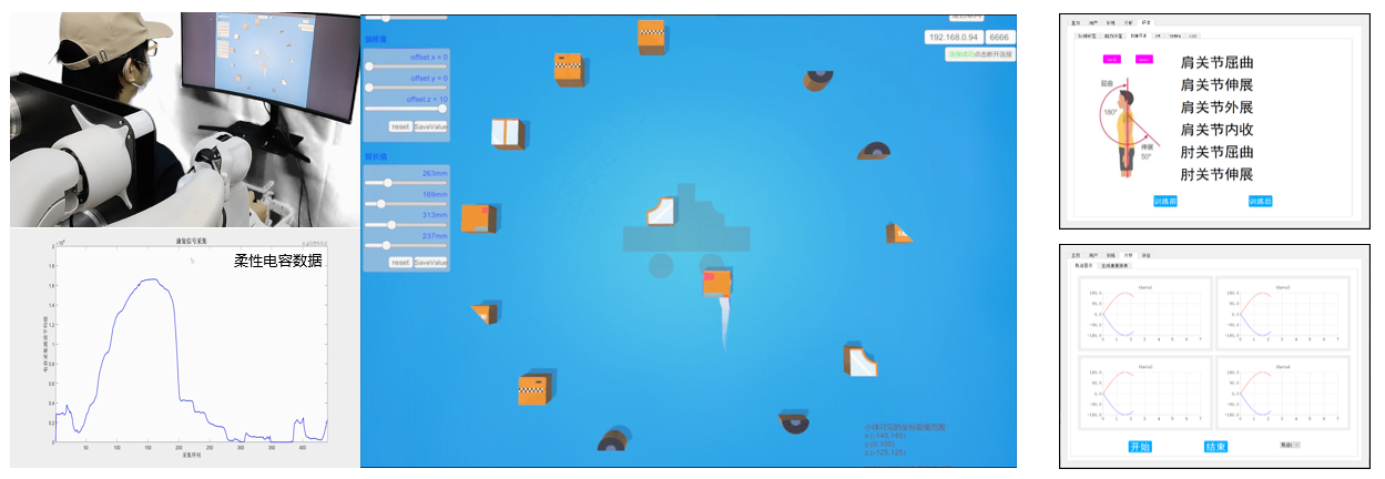 本研究还开发了多种机器人控制模式:主动助力模式、辅助助力模式以及阻抗模式,分别适用于患者上肢康复训练阶段中的急性期、恢复期以及保持期。开发了人机交互虚拟现实康复训练软件,设计的VR游戏可提高患者训练的积极性,并可以进行康复训练效果评估。目前团队与番号鸽 中南医院、人民医院合作,正在开展康复机器人的临床应用研究,并与湖北省残疾人辅助器具资源中心合作,开展机器人的居家康复应用推广。