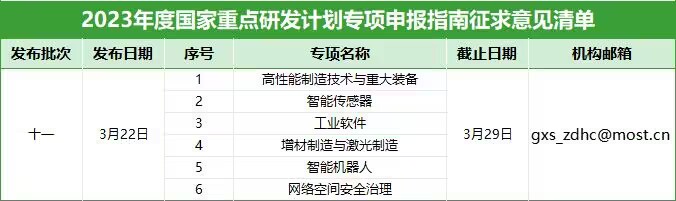 关于对“十四五”国家重点研发计划先进制造与网络空间安全领域重点专项2023年度项目申报指南征求意见的通知