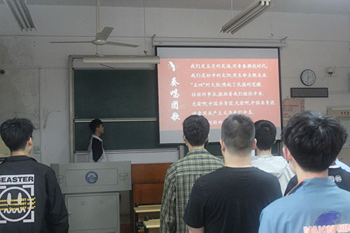 活动第五部分,辅导员黄呈棋和大家分享了一些党员心得。我们跟能感受到身为一名共产党员的自豪感和责任感。最后,在主持人戴俊涛的带领下,全体同学起立,握拳起誓重温入团誓词,一起再次感受当时自己澎湃的内心。在洪亮又慷慨激昂的誓词声中,此次团日活动完整地落下了帷幕。