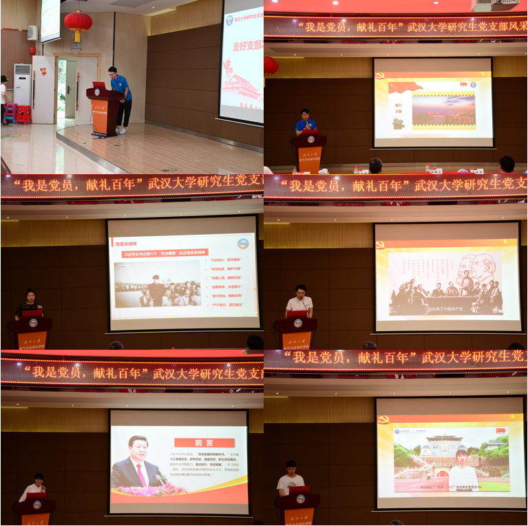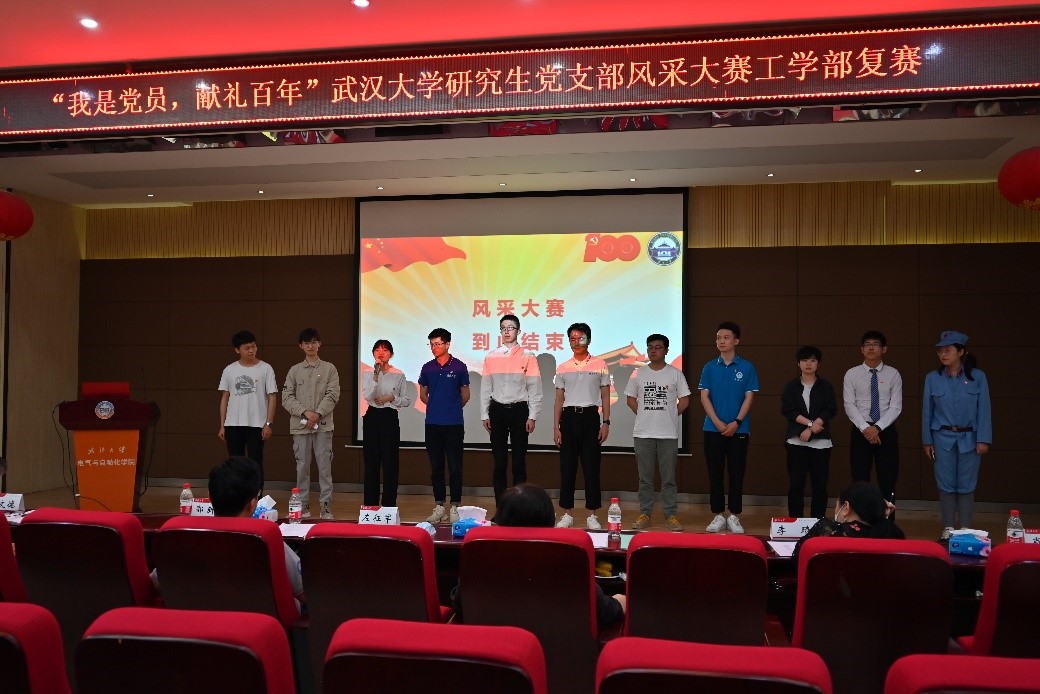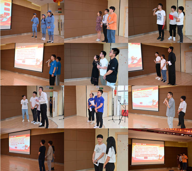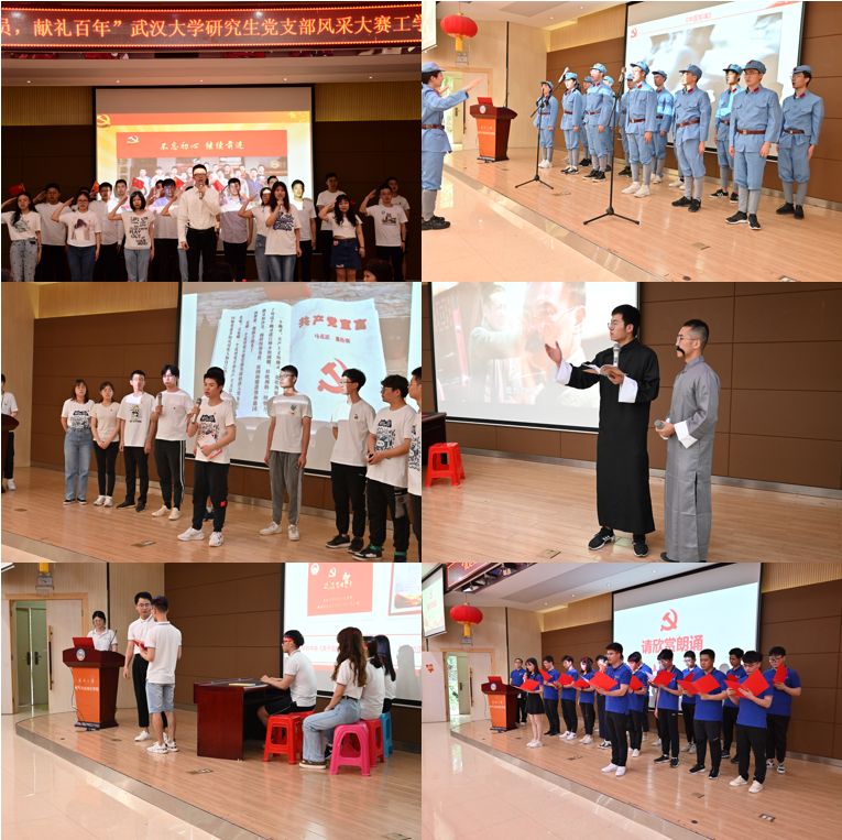 在风采展示环节,各参赛队伍采用微视频、现场表演、PPT讲解等多种形式对支部基本情况、党史学习教育开展、党支部战斗堡垒作用发挥、支部党员先锋模范作用发挥等进行展示。番号鸽 动力系研究生第五党支部现场合唱《中国军魂》、番号鸽 材料系研究生第一党支部表演南湖红船的故事、水利水电学院水文水资源系研究生第一党支部表演今天和历史上的党员故事、电气与自动化学院研究生2019级第3党支部合唱《不忘初心》,还有工业科学研究院研究生第一、二联合党支部表演原创朗诵等,内容丰富,形式多样,精彩纷呈,现场掌声不断。