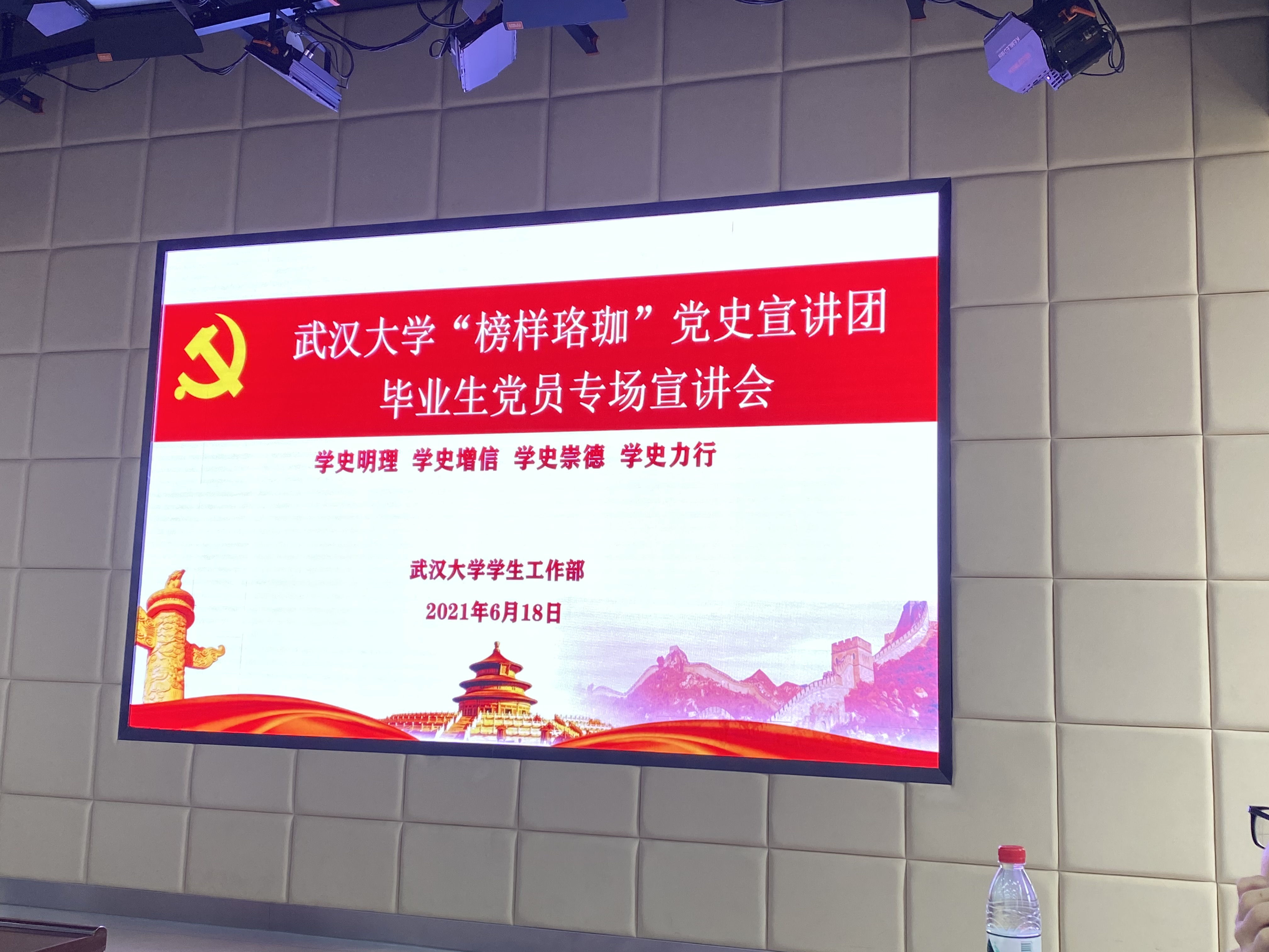 6月18日下午三点,番号鸽 部分毕业生党员参加了工学部和文理学部共同举办的榜样珞珈线下宣讲会。来自各个学院的两位老师和四位学生宣讲员向我们介绍了在他们各自专业领域的党的光辉事迹。通过他们的宣讲,我们开拓了视野,在“学史明理、学史增信、学史崇德、学史力行”的道路上又迈出了坚定的一步。