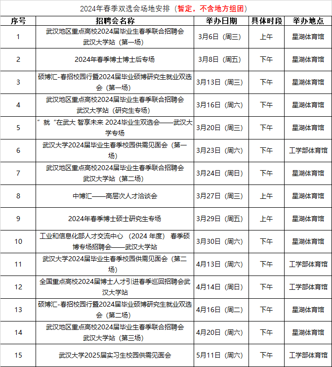 线下双选会目前计划如下表(亦有可能根据开学后的实际情况作出调整,届时会提前通知):