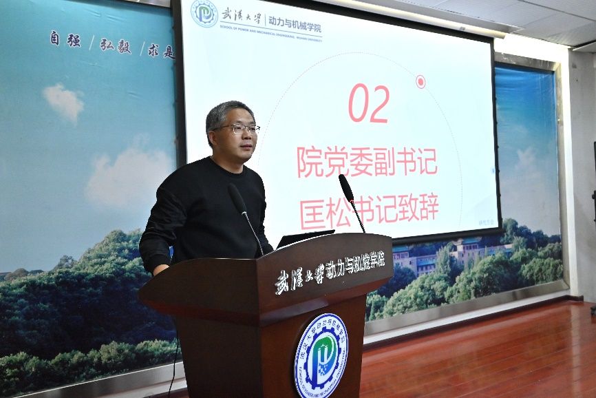 会议第一项由院党委副书记匡松书记致辞。他指出研究生会成员要发挥好平台优势,围绕创新改革、立德树人、人才培养的目标推进工作;把握好为同学们服务的宗旨,扛好旗,走对路,胸怀大格局;结合院情施展才智,加强学习,在工作中把握核心,积极思考克服障碍。此外,他强调要确保新闻宣传政治方向、舆论导向、价值取向正确,发挥党建引领作用 提升全媒体宣传效能。
