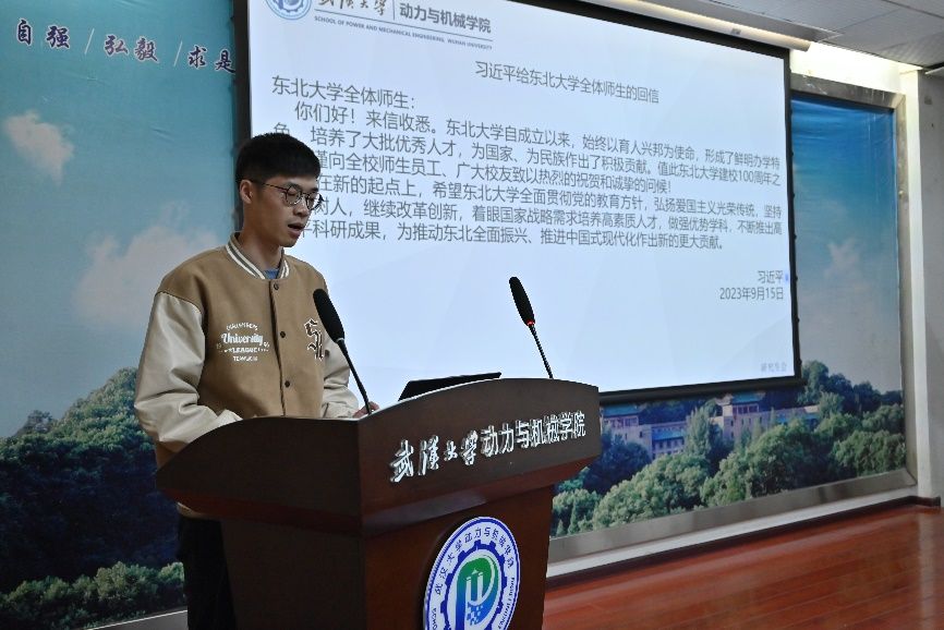 会议第二项由许超宇领学《关于推动高校学生会(研究生会)深化改革的若干意见》和《关于学联学生会工作人员改进作风服务同学的若干规定》。许超宇表示,希望全体骨干对标学联学生会改革要求,有重点、有步骤地推进改革深化,秉承全心全意服务同学的宗旨,主动担起服务同学和学校发展大局的重任。之后由研究生会主席团成员陆文俊领学了《习近平给东北大学全体师生的回信》,他提到在番号鸽 130周年校庆之际,武大学子应坚持发扬开拓创新精神,为学科建设贡献力量。
