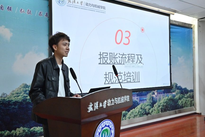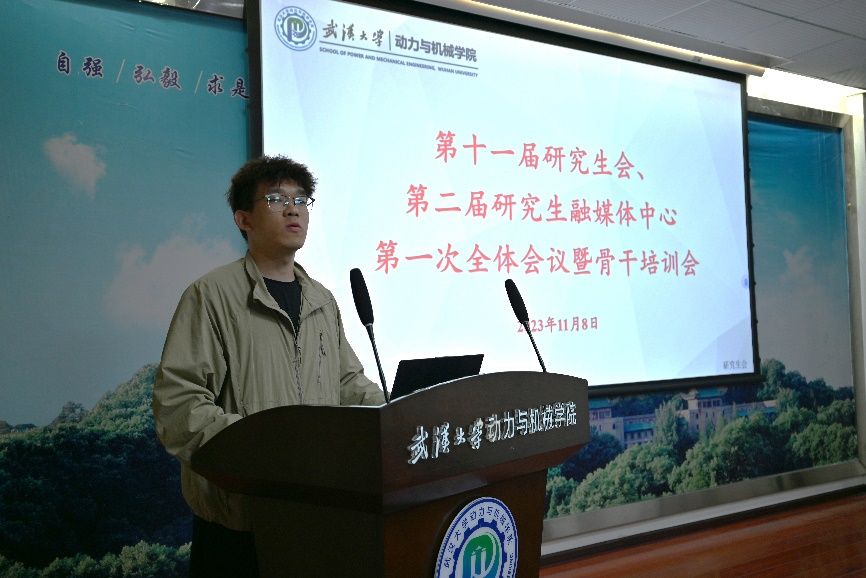 会议第三项由研究生会主席团成员、研究生融媒体中心主任周帅旗分别就新闻稿撰写、投稿流程与报销流程及规范进行培训。