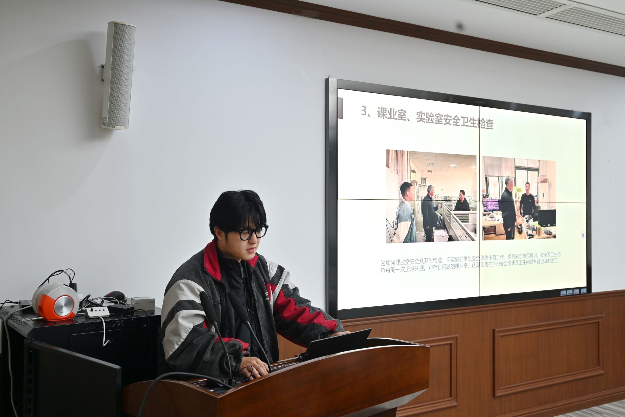院研究生会安全权益部负责人常一龙同学从介绍了安全权益部近期的主要工作。主要包括“研究生新生实验室安全宣讲”“课业室、实验室安全卫生检查”“消防安全演练”“液氮泄漏事故应急演练”“文明课业室、寝室评比”。回顾2023的活动开展方面的问题,展望2024未来要开展的活动。