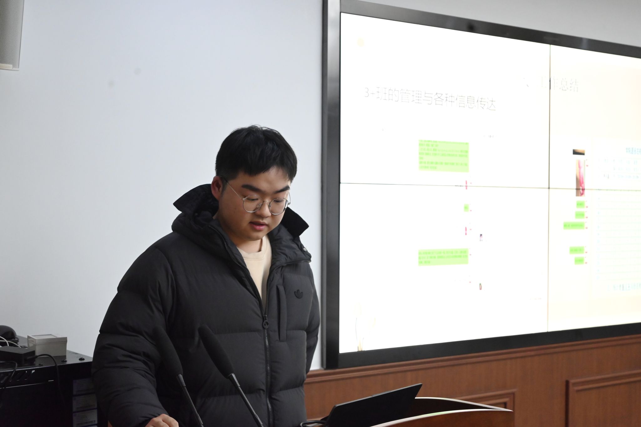 院研究生会秘书部负责人吴智伟同学首先从文档撰写、财务报账、3+班综合事务管理、材料收集等方面对秘书部八个月以来的工作进行总结,提出在处理工作中遇到的困难和不足,做出进一步反思并对下一阶段工作进行规划。同时吴智伟同学提出展望,在过去的时间里秘书部在做好本职工作的同时也积极参与到各部门的活动中去,秘书部将继续加强部门之间的联合协作,共同打造优秀的研究生会。