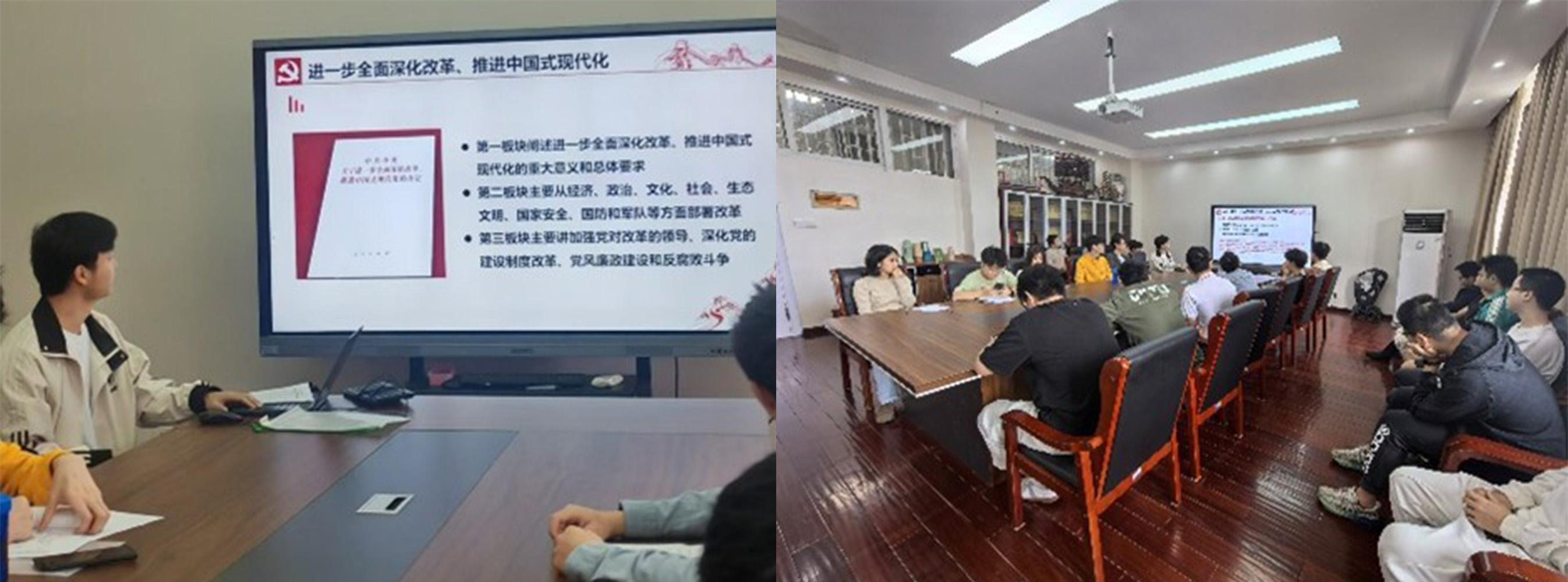 动力系研究生第三党支部以“凝心聚力,聚焦时代脉搏”为主题开展十月主题党日活动,活动最后阶段,与会同志发表自己的学习心得。李春博谈到,学习党的二十届三中全会精神,不仅是对过去工作的总结,更是对未来发展的规划。作为一名党员,我们必须时刻保持改革创新的意识,勇于探索、敢于实践,为推动事业发展贡献自己的智慧和力量。
