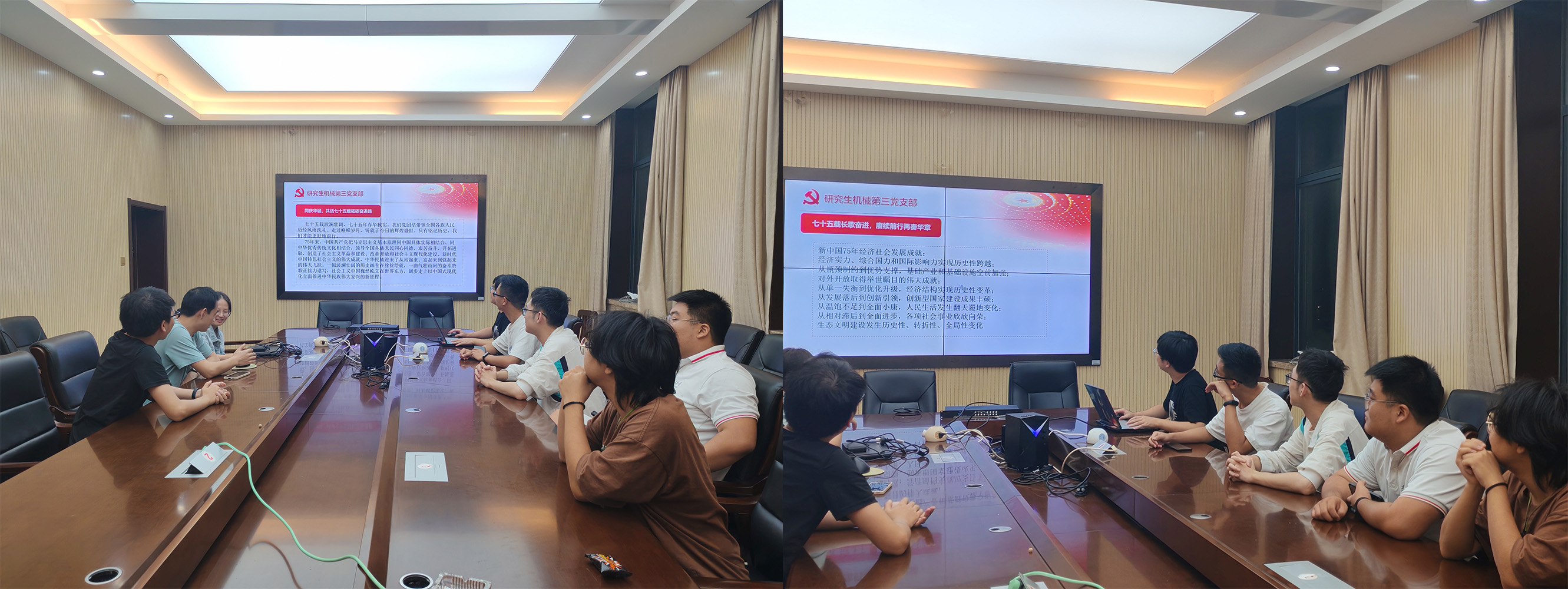 机械系研究生第三党支部以“同庆华诞,共话七十五载砥砺奋进路”为主题开展十月主题党日活动,杨沂东表示,七十五载波澜壮阔,七十五年春华秋实,我们党团结带领全国各族人民历经风雨洗礼、走过峥嵘岁月,铸就了今日的辉煌盛世,只有铭记历史,我们才能更好地前行。学习结束后,同志们展开了热烈的讨论,分享自己的心得体会。
