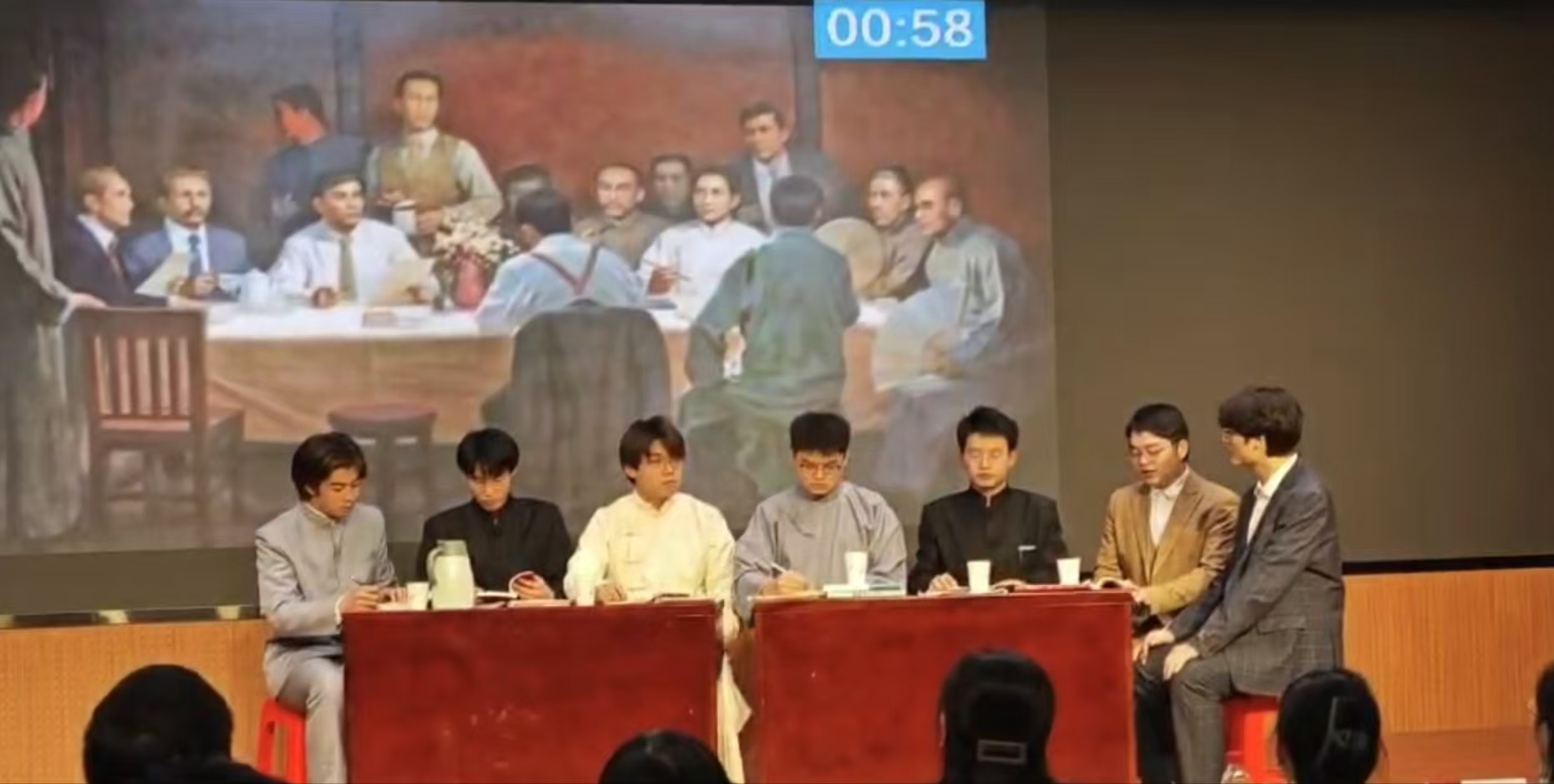 复赛活力风采环节展示中,机械系研究生第一、第五支部联合支部通过“重温中共一大 传承红船精神”情景剧重温中国共产党的诞生,诚挚献礼中华人民共和国成立七十五周年华诞。