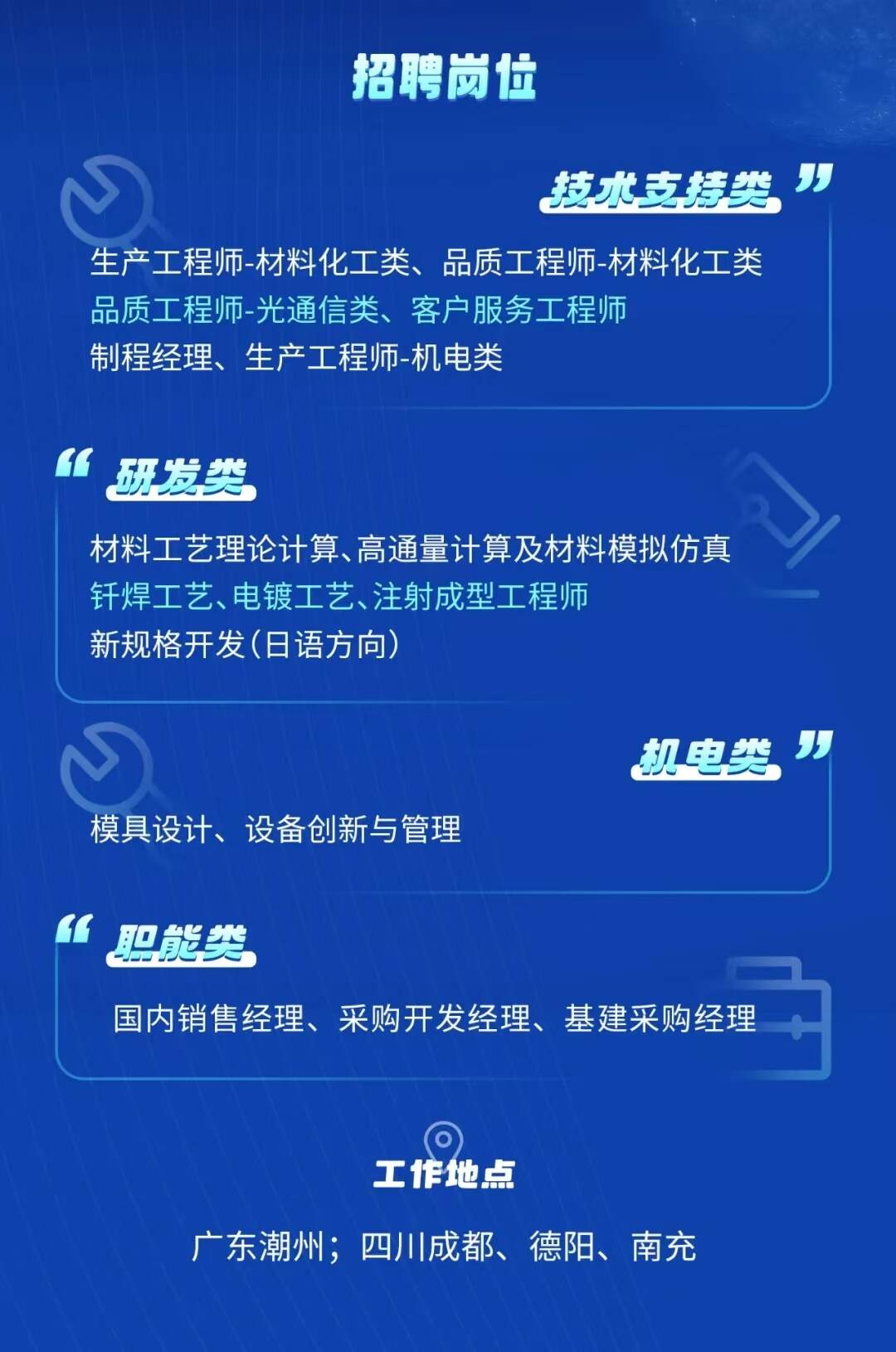 🚀【重点招募】技术支持精英,生产类、品质类、设备类;职能类精英,市场调研、招聘经理-语言类,通通等你来挑战!